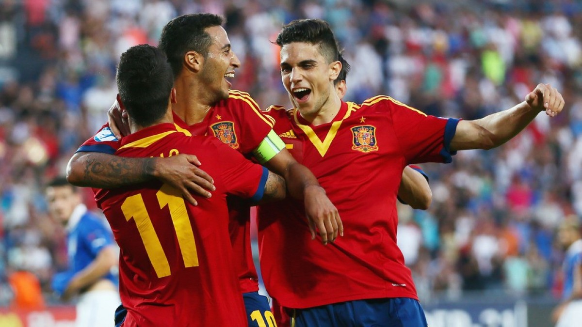 ესპანეთის ახალგაზრდულ ნაკრებში 4 ისეთი ფეხბურთელი ირიცხება, რომლებმაც 21-წლამდელთა ევროპირველობა ზედიზედ მეორედ მოიგეს. ესენი არიან: მეკარეები დავიდ დე ხეა და დიეგო მარინიო, მცველი მარტინ მონტოია, ნახევარმცველი ტიაგო ალკანტარა და თავდამსხმელი იკერ მუნიაინი.