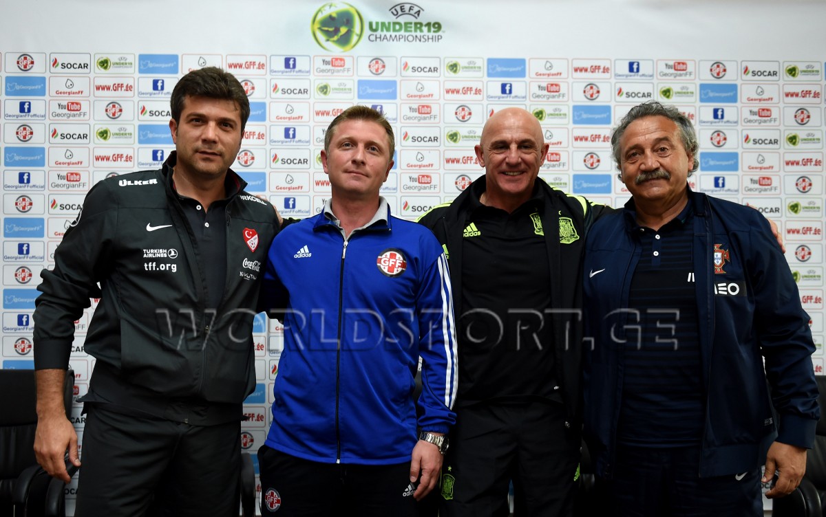 თბილისში 19 წლამდე ფეხბურთელთა ელიტ რაუნდის ერთი დღით ადრე, საქართველოს, ესპანეთის, პორტუგალიისა და თურქეთის ნაკრებების მწვრთნელებმა მიხეილ მესხის სახელობის სტადიონის საკონფერენციო დარბაზში ერთობლივი პრესკონფერენცია ჩაატარეს.