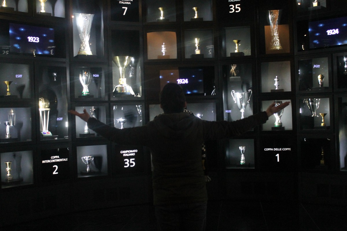 სწორედ იუვენტუს მუზეუმში ნანახით დავიწყეთ დღევანდელი წერილი – იქაურ შთაბეჭდილებებზე საუბარი საკმაოდ რთულია. ეს უბრალოდ ფანტასტიკა იყო. იქაურობა ერთიანად აღნიშნავს წარსულს, აწმყოსა და თავისებურად მომავალს. თავიდან დღევანდელი ფორმაციით გუნდის ყველა ფეხბურთელის სილუეტები გხვდებიან და მერე, ერთი ოთახი ჩნდება, რომელშიც “ბებერი ქალბატონის” ტიტულებია გამოფენილი. შესაძლოა, “იუვე” ჩემპიონთა ლიგის თასებით სამშობლოში ვერ დაიკვეხნის, მაგრამ სხვა დანარჩენი თასების სიმწირეს არ განიცდის და რეალურად ყველაზე მეტი თასიც აქვს იტალიურ კლუბებს შორის მოგებული. მოკლედ, აქ მცირე ხნით ნადვილად ვერ გაჩერდებით და ერთი წუთს მეორე მოსდევს, მეორეს მესამე და ასე გაუთავებლად. ჩვენს იქ ყოფნაში ერთი იტალიელი გოგონა მოვიდა, რომელიც ტელეფონით ვიდეოს იღებდა და რეაქციიდან აშკარად ჩანდა, რომ ნანახმა მოლოდინს გადააჭარბა – გაოცება გამოხატა და კარგა ხანს ვერ დაიმშვიდა სახის გამომეტყველება...