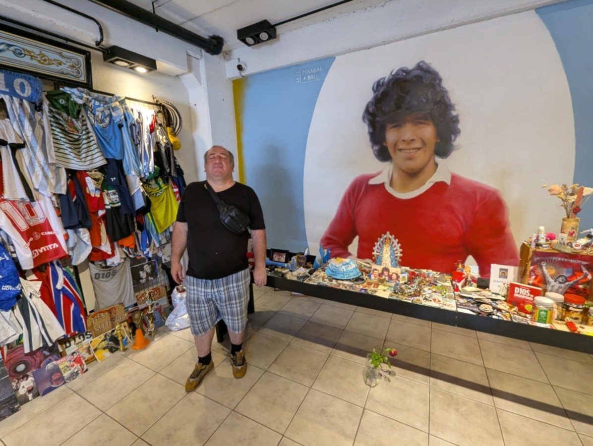 სადაც ფეხბურთი და საფეხბურთო ამბები ტრიალებს, იქ ხომ მარადონა ისეთივე "ცოცხალია", თითქოს გუშინ ებურთავოს "ბოკას" მაისურით. სახლების კედლებზე, ასფალტზე, ღობეებზე, ადამიანთა სხეულის სხვადასხვა ალაგას და თქვენ წარმოიდგინეთ, ნაგვის ურნაზეც კი, სხვადასხვაგვარად დახატული დიეგოები შემოგცქერიან.