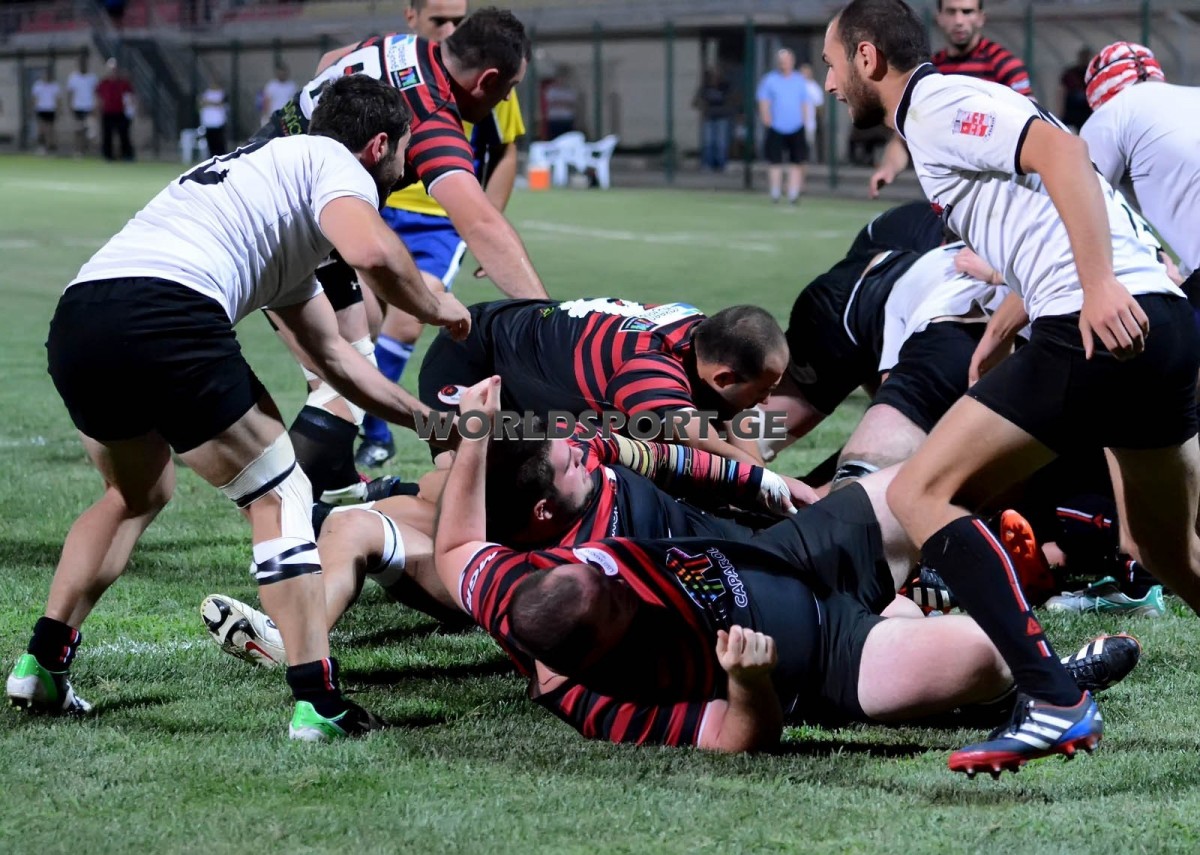 ტაიმის შუაში წინ “ხარები” გავიდა - ამჯერად ხუციშვილმა ზუსტად დაარტყა, თუმცა 4 წუთში ხმალაძემ ძელის გავლით წონასწორობის აღდგენა შეძლო, 32-ე წუთზე კი, სიტუაცია დაიძაბა და მოედანზე ჩხუბი ატყდა, რის შემდეგაც რეფერიმ ორივე გუნდიდან ორ-ორი მორაგბე გაასინბინა. 13-კაცაში არეული თამაში გაჩაღდა და ამით სტუმრებმა იხეირეს - გიორგი ბასილაიამ ალამთან ლელო გაიტანა და ხუციშვილმა გარდასახვა გამოიყენა. ლელოს სიტუაციის კიდევ ერთხელ დაძაბვა მოყვა და ამჯერად რეფერიმ მოედნიდან თითო-თითო მორაგბე დაითხოვა, რის შემდეგაც ორივე გუნდი 12-12 კაცის ამარა დარჩა.