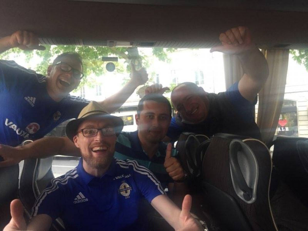 Северные ирландцы был всех возрастов и весовых категории, но какое это имеет значение когда ты северно ирландец и едиш болеть за команду в другую страну? Хотя французский персонал автобуса попросил их воздержатся от безмерного пития пиво и орания песень, но ирландцы оказались упрямыми как Тамаз Мечиаури и всю дорогу дарили нам великолепное шоу.то не было только песнопение и барабание на стулах, это была попытка ввязать всех остальных в это дело и вышла так что через некоторое время все пели их песни на своих языках.