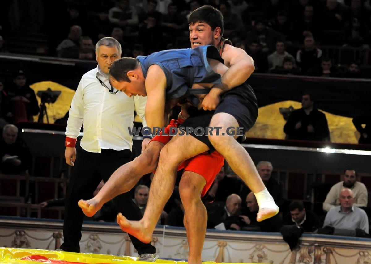 Финал выдался более напряжённым и несколько раз прерывался, в последний раз – за две секунды до финальной сирены, когда счёт был ничейным и болельщики Нозадзе требовали показать Гвиниашвили предупреждение из-за пассивности. После многократного просмотра записей спорных эпизодов судейский стол под руководством Тамаза Тамазашвили принял решение о продолжении схватки до первого приёма. После почти 5-минутной вязкой борьбы Гвиниашвили исполнил победный бросок.