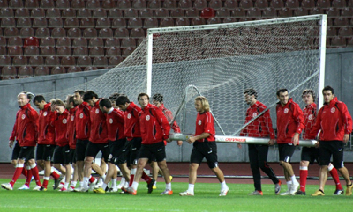 According to public opinion, these terrible series should stop today. It is the third round of Euro qualifying match and Georgia (2 points) hosts Malta (no points). Yesterday Georgian players started training at "National" stadium at 19:00. The training included "squares" and two-goal. During the two-goal the teams played with the same staff like they did at "Mikheil Meskhi":