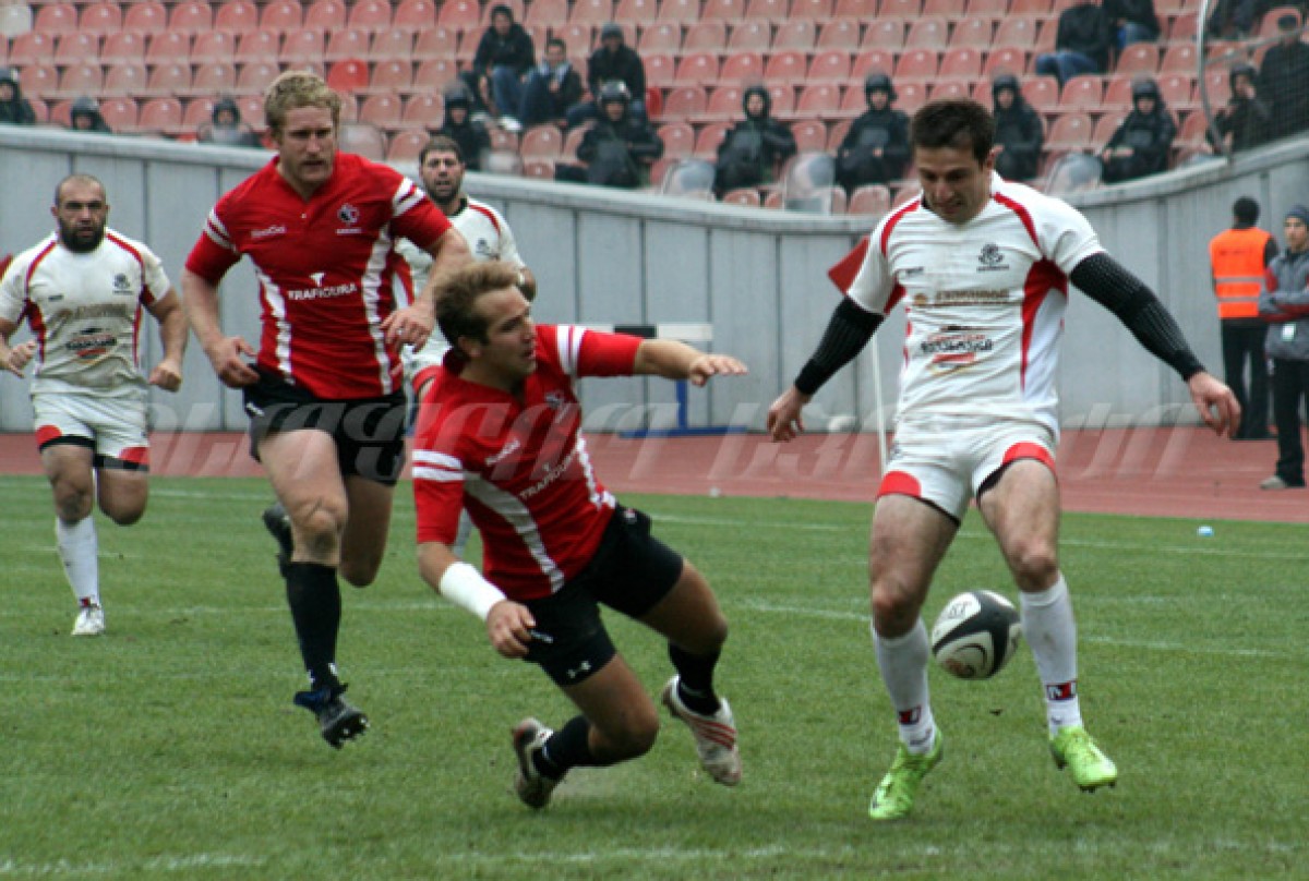 After the renewed of the math opponent used the mistake of hosts and scored responsive try. Fortunately Pridchar could not realize, after this Georgian National Team started attack and in a result of it Zirakishvili scored try, but this time Malaghuradze could not realize. Soon Prichard scored free kick in average distance and the first half finished 15:6.