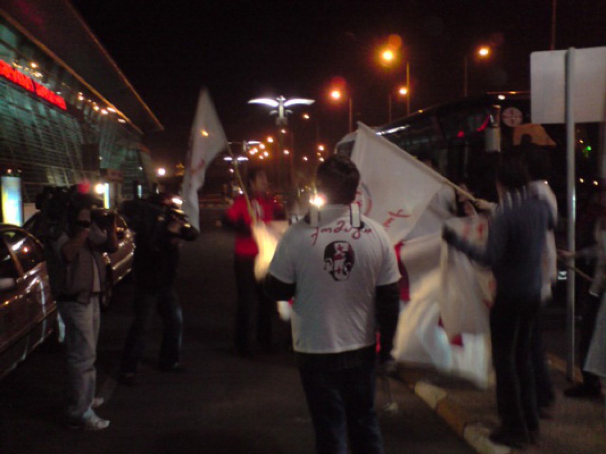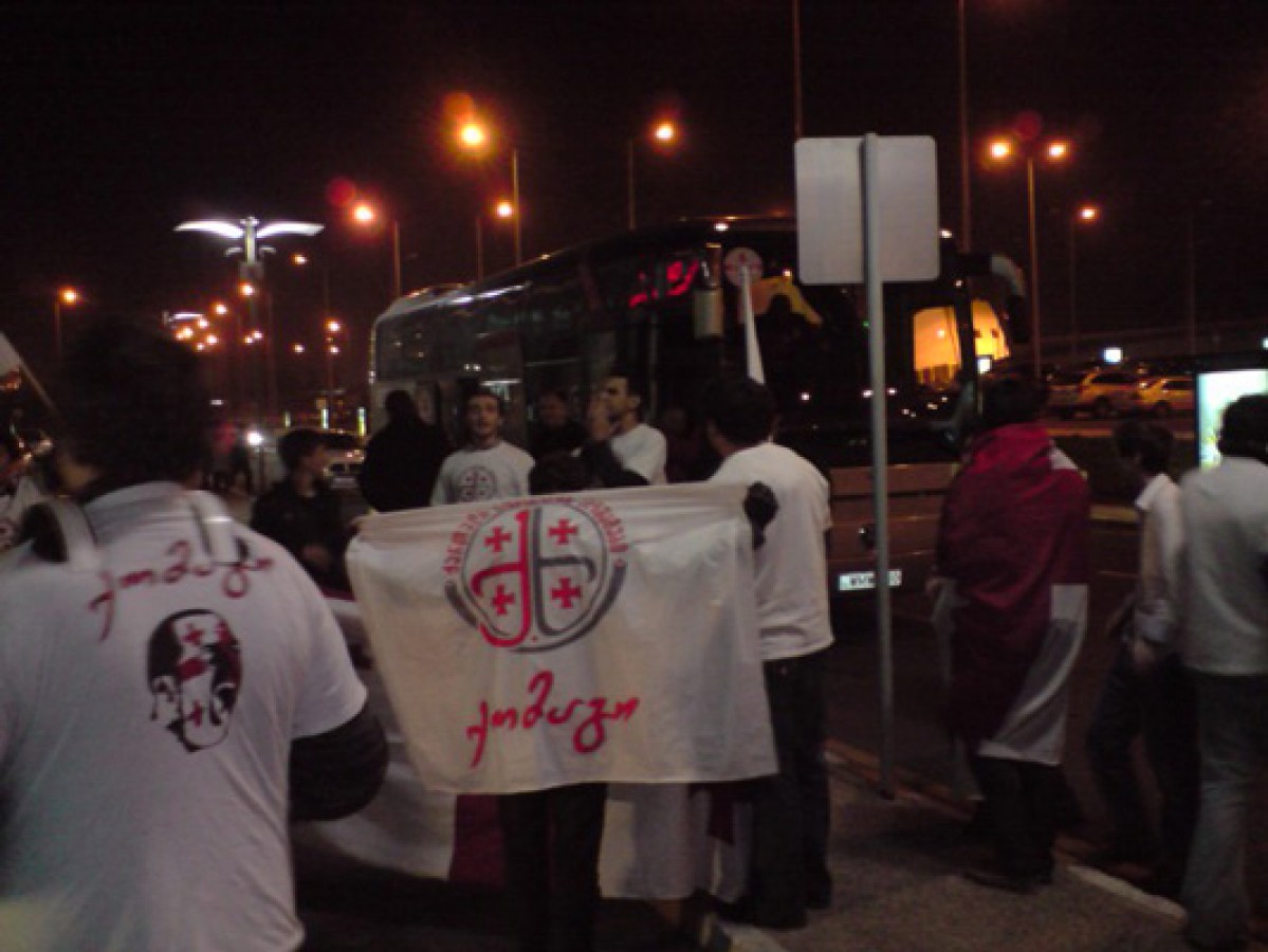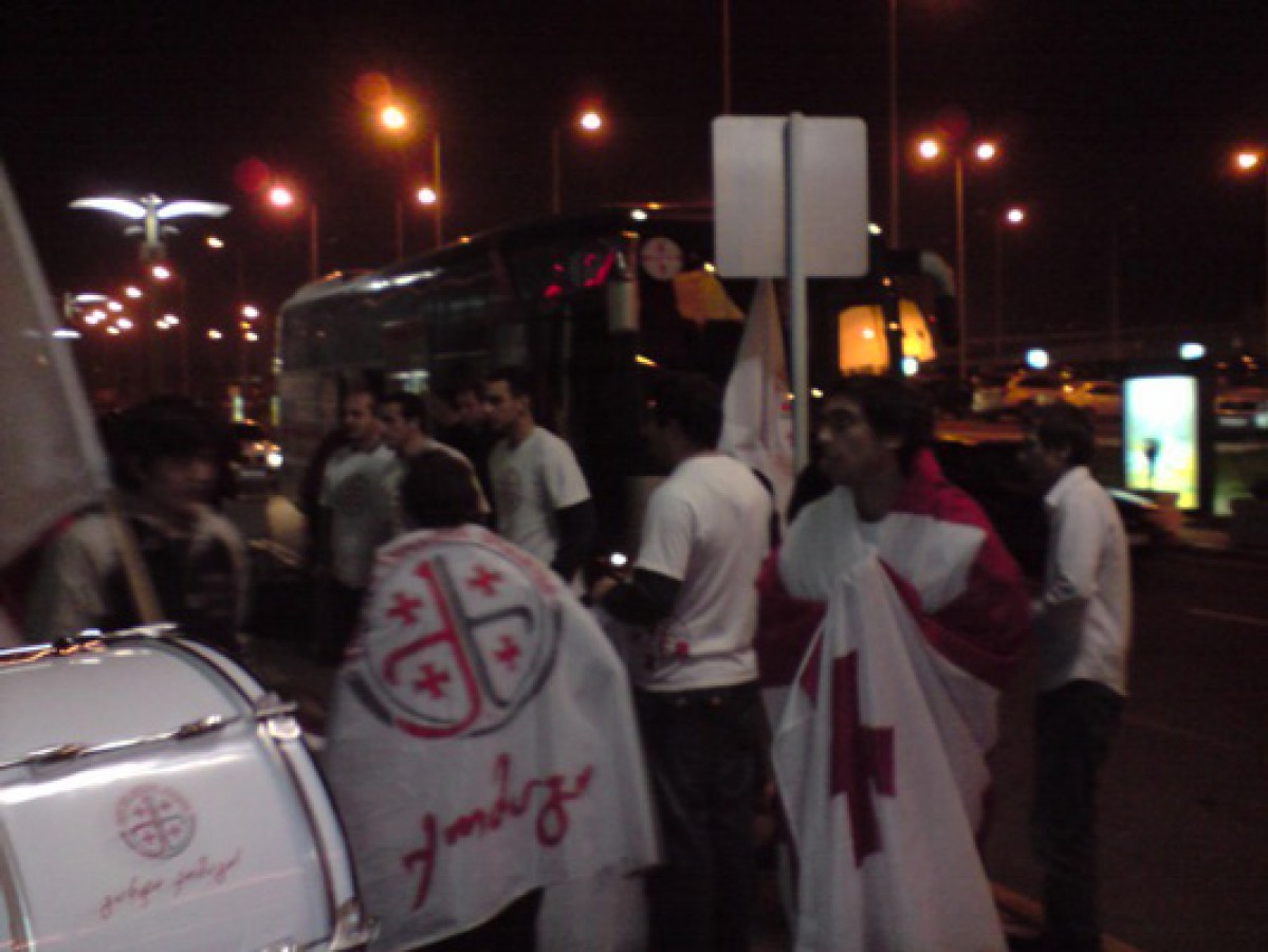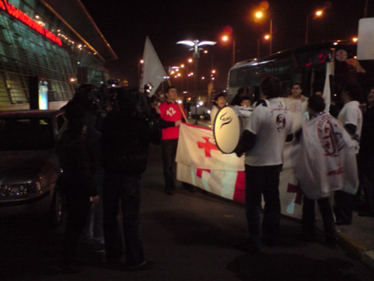 Today, Georgian flags were waving and a song was sung at Georgian airport. "Fans of Georgian sport" met the national team which beat Slovenia 2:1 in a friendly match. Also journalists were at the airport.