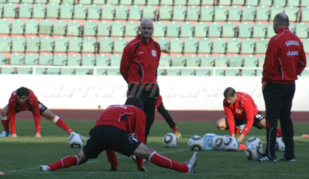 According to a preliminary agenda National Team would train at “Mikheil Meskhi” stadium, but they had training at “Boris Paichadze” stadium. Khojava who does not feel well did not participate in training, supposedly he will not be able to play in this match. Only Martsvaladze had training from legionaries.