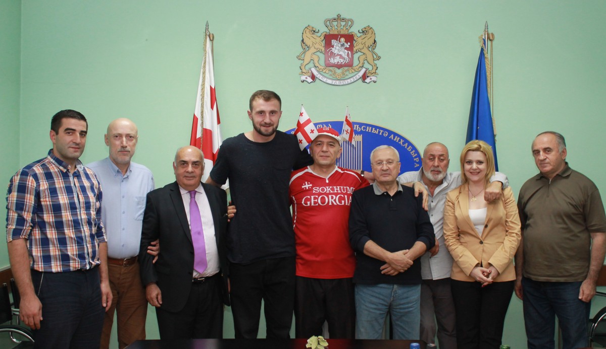 რუმინეთში წარმატებით გამოსვლასთან დაკავშირებით “სოხუმს” აფხაზეთის ავტონომიური რესპუბლიკის მთავრობაში უმასპინძლეს. შეხვედრას ავტონომიური რესპუბლიკის მთავრობის თავმჯდომარე ვახტანგ ყოლბაია, უმაღლესი საბჭოს თავმჯდომარე გია გვაზავა, კულტურის მინისტრი დიმა ჯაიანი, ჯანდაცვის მინისტრი ქეთევან ბაკარაძე და ავტონომიური რესპუბლიკის დევნილთა და განსახლების დეპარტამენტის უფროსი კოტე კუჭუხიძე დაესწრნენ. აქვე იყვნენ “სოხუმის” მთავარი მწვრთნელი ვაჟა კვარაცხელია და ჟურნალისტი თენგიზ პაჭკორია. აქვე მოგახსენებთ, რომ "სოხუმის" მიერ საქართველოს 3X3-ზე კალათბურთზე ჩემპიონობის მოპოვებაში დიდი როლი ითამაშა კოტე ტუღუშმა, რომელიც შეხვედრას იმის გამო ვერ დაესწრო, რადგან საქართველოს ეროვნულ ნაკრებთან ერთად, მთავარი მწვრთნელის ასისტენტის რანგში ეროვნული გუნდის შეკრებაზე სლოვენიაში იმყოფება.