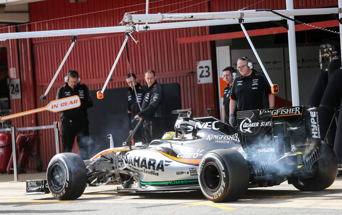კარგი ტესტები ჰქონდა სერხიო პერესსაც, რომელმაც „ფორს ინდიას“ ბოლიდის საჭესთან, თანამემამულე ალფონსო სელისი შეცვალა. ფეტელის და რიკარდოს მსგავსად, თავისი საუკეთესო დრო მექსიკელმაც ულტრა სოფტ რეზინით დააფიქსირა. მან უკან ჩამოიტოვა როსბერგი, თუმცა გერმანელს და მის გუნდს „თავისი საქმე“ ჰქონდათ და დროს აშკარად არ გამოჰკიდებიან. მან 172 წრე გაიარა, ორი დღის ჯამში სამქიმიანების მონაგარი კი 300 წრეზე მეტია.
