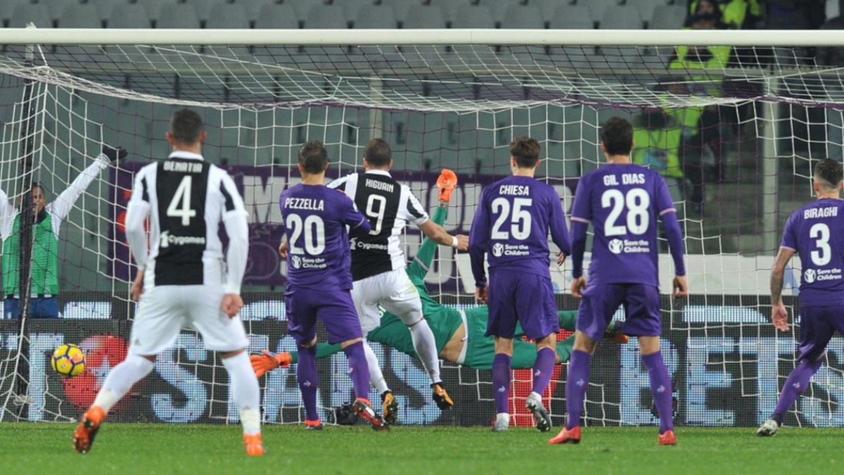 “ფიორენტინას” კი სხვა მიზნები აქვს, მაგრამ მეტოქეს ტოლი არაფერში დაუდო. მეტიც, პირველ ტაიმში დაჯაბნა კიდეც და სიმართლე რომ ვთქვათ, ანტრაქტამდე გატანას იმსახურებდა. გოლთან ყველაზე ახლოს ჟილ დიასი იყო, რომლის დრიბლინგი თითქოს ლოგიკურად სრულდებოდა, მაგრამ, ბურთი ძელს მოხვდა და სტუმრები გადარჩნენ. გვერდს ვერ ავუვლით 21-ე წუთზე მომხდარ ეპიზოდს – ჯორჯო კიელინის ბურთი ხელზე ხვდება და მარკო გუიდა პენალტს ნიშნავს. მსაჯმა ვიდეორეფერის გამოყენებაზე უარი თქვა, მაგრამ დაახლოებით 2-წუთიანი განსჯის შედეგად თერთმეტმეტრიანი გაუქმდა. მიზეზი? – მარკო ბენასი, რომლის ჩაწოდებული ბურთი მოხდვა კიელინის თამაშგარეში იმყოფებოდა. მაგრამ, საყურადღებოა ის ფაქტიც, რომ ბენასის ბურთი არა თანაგუნდელისგან, არამედ ალექს სანდროსგან მიუვიდა. მოკლედ, დიდი პოლემიკა გამოიწვია ეპიზოდმა, თუმცა ფაქტია, პენალტი გაუქმდა. საპასუხოდ კი, “იუვენტუსი” შეტევაში ღირებულს ვერაფერს ქმნიდა და კარში ერთხელ დაარტყა. აღსანიშნავია, რომ ბოლოს ტურინულმა გრანდმა პირველ ტაიმში ასე მწირი რაოდენობით მეტოქის კარს 2015 აგვისტოში დაემუქრა (“რომას”).