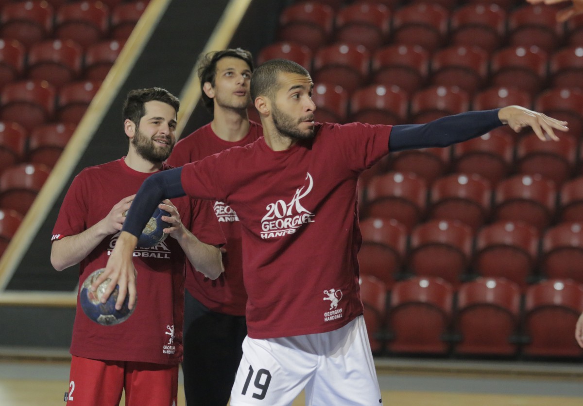 GK 22. შოთა თევზაძე (1981, 200, ფოჩანი, რუმ), 16. გიორგი ხარაიშვილი (1998, 194, იმედი თელავი), 1. ირაკლი დიხამინჯია (2000, 190, პეგასი) – LW 7. ხაზეინ რუსტამოვი (1998, 178, ქუთაისი), 15. გიორგი ქათამაძე (2000, 185, პეგასი) – LB 9. სერგო დათუკაშვილი (1978, 198), 20. ზურაბ გოგავა (1998, 195, პეგასი), 21. ზეზვა იობაშვილი (1998, 196, იმედი თელავი) – CB 8. ირაკლი ჩიქოვანი (კელერაში, რუმ; 1989, 198), 26. შალვა სტურუა (1994, 191, ბათუმი), 14. ნიკოლოზ კალანდაძე (2002, 194, პეგასი) – RB 24. რატი მსხვილიძე (1986, 208, რაბოტნიკი, მკდ), 11. გიორგი ცხოვრებაძე (2001, 193, მონპელიე, საფ) – RW 23. რევაზ ჭანტურია (1982, 178, პელისტერი, მკდ), 71. გიორგი დიხამინჯია (1997, 190, მიდტიულანდი, დან) – P 3. გიორგი ლაპიაშვილი (2000, 195, პეგასი)