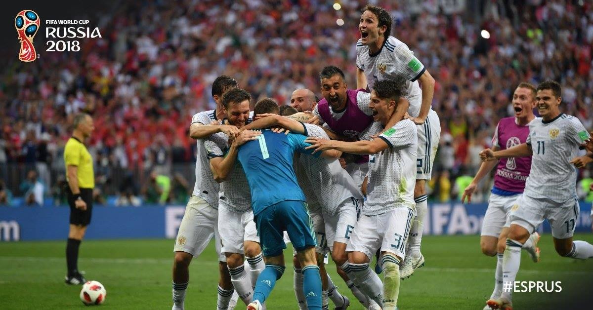 მსოფლიო ჩემპიონატის 1/8-ფინალურ შეხვედრაში მასპინძელმა რუსეთმა ესპანეთი დაამარცხა. მატჩის ძირითადი დრო 1:1 დასრულდა, ხოლო პენალტების სერიაში რუსებმა 4:3 იმარჯვეს.