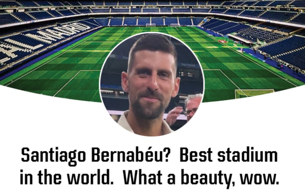 „რა სილამაზეა. ეს რაღაც განსაკუთრებულია! საუკეთესო სტადიონი მსოფლიოში, უბრალოდ საოცარი. წარმოუდგენელი იქნებოდა აქ ჩოგბურთის მატჩის თამაში. იქნებ... ვინ იცის? ერთ დღეს. ეს შესანიშნავი იქნებოდა", - თქვა ჯოკოვიჩმა მადრიდის „რეალის" სოციალურ ქსელში გამოქვეყნებულ ვიდეოში.