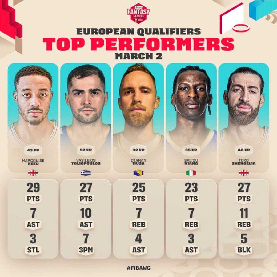 ფიბამ მსოფლიოს ჩემპიონატის საკვალიფიკაციო ეტაპის მეოთხე ტურის საუკეთესო ხუთეული დაასახელა, რომელშიც საქართველოს ნაკრების ორი წევრია - თორნიკე შენგელია და მარკის რიდი.
