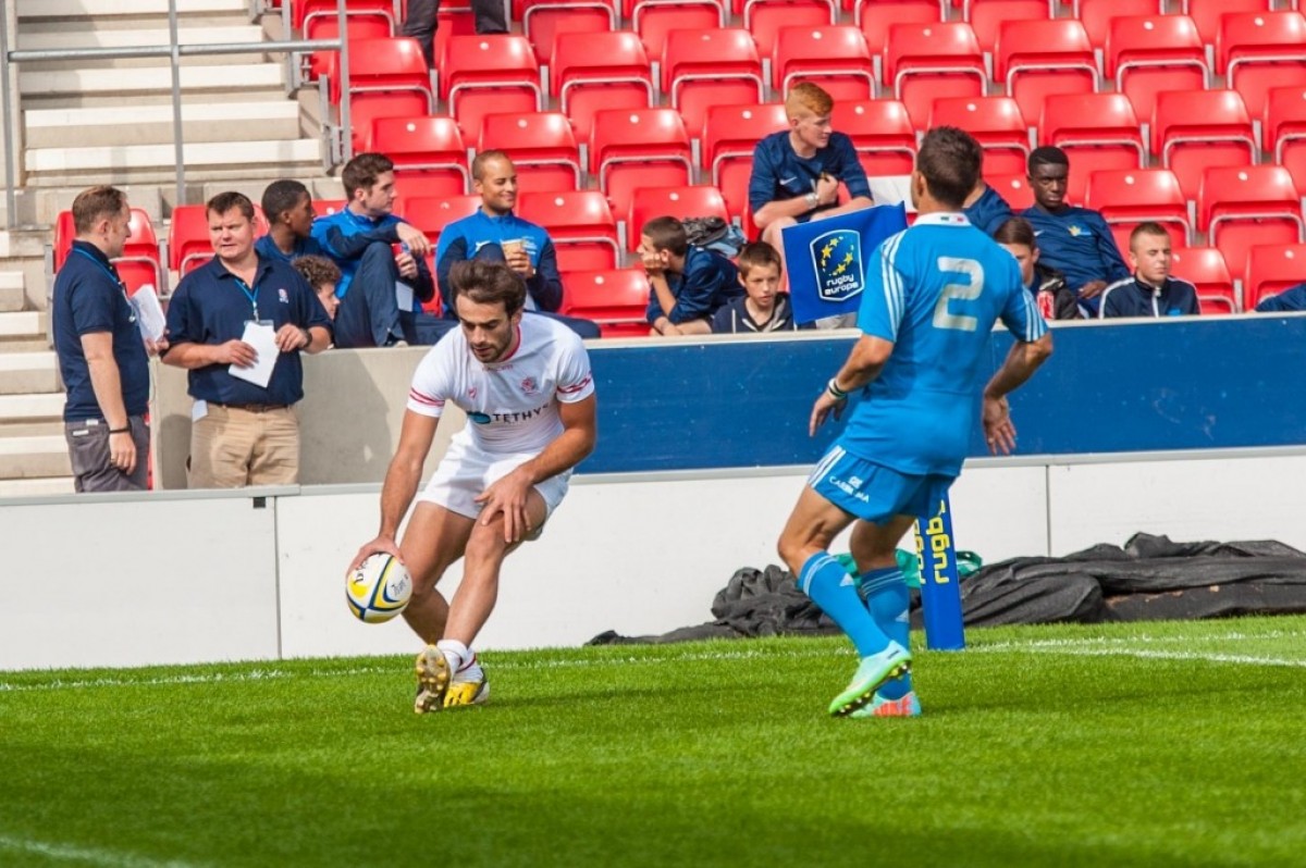 პირველ შეხვედრაში საქართველოს ნაკრების მეტოქე იტალია იყო და აქ მოვლენები ქართველთა სასიკეთოდ განვითარდა. მე-3 წუთზე ლელო გიორგი ფრუიძემ გაიტანა და ტაიმი 5:0 დასრულდა, თამაშის განახლებისთანავე იტალიელთა ჩათვლის მოედანში ბურთი ირაკლი გეგენავამ დაამიწა. მალევე მეტოქემ ერთი ლელო გაქვითა და გარდასახვით სხვაობა 3 ქულამდე დაიყვანა (10:7), მაგრამ დარჩენილ დროში ლელოები მხოლოდ ქართველებმა - ზურაბ ძნელაძემ და ლევან გოგოლაშვილმა - გაიტანეს და თამაში 20:7 დასრულდა.