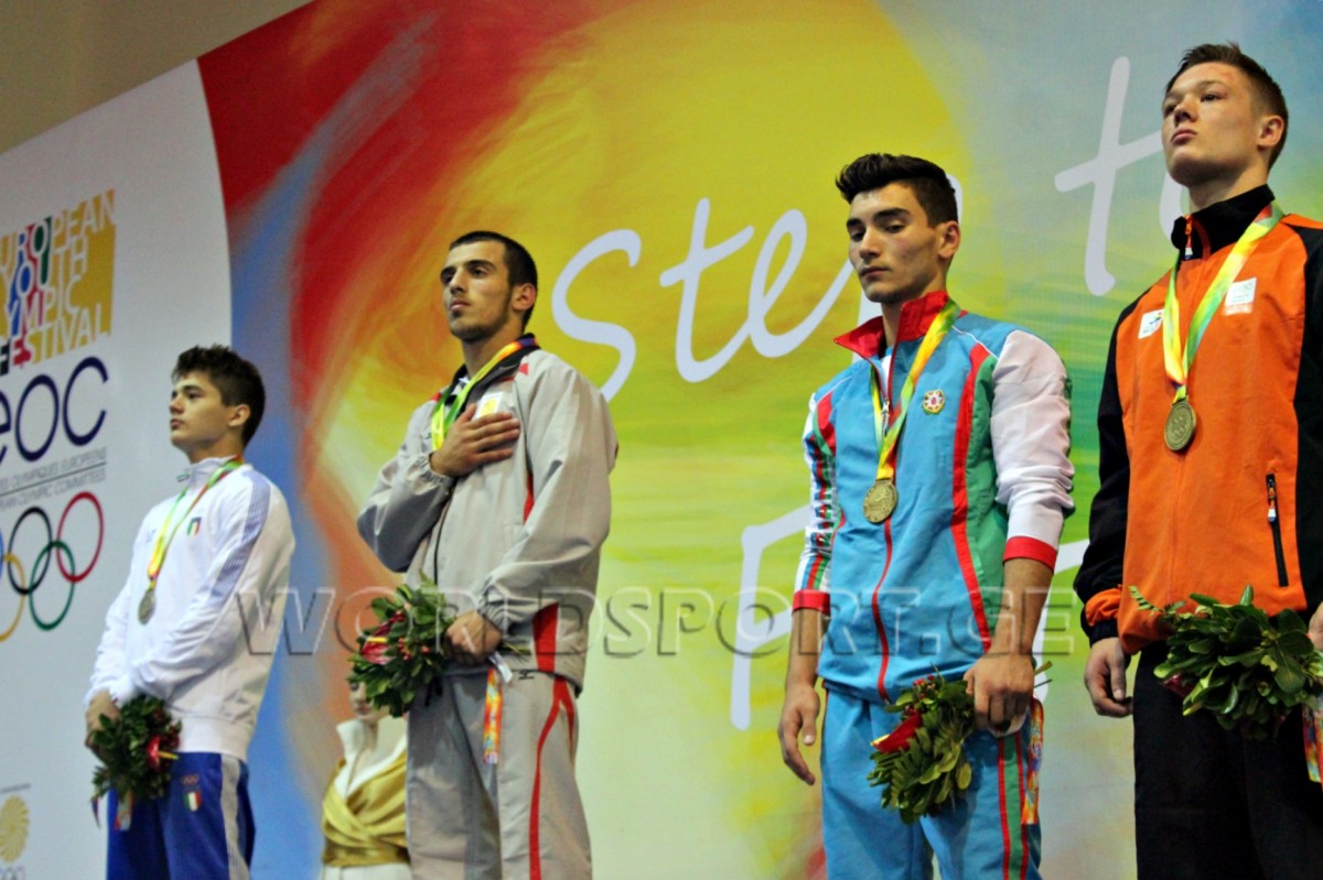 The Georgian judo team won gold medal at European Youth Olympic Festival. Robinzon Beglarashvili took the first place in 60 kg. In final he beat Manuel Lombardo of Italy by waza-ari.