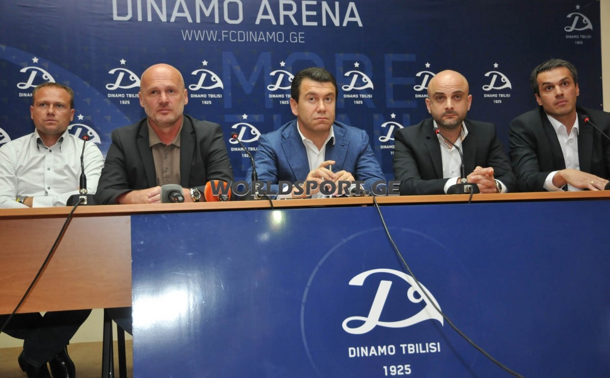 In the press conference hall of “Dinamo” Tbilisi Roman Pipia, president of the club, presented Michal Bilek, new coach of “Dinamo”, to the journalists. According to Pipia, the 49-year-old Czech signed 1+1-year contract with “Dinamo”. Irakli Vashakidze, sports manager of “Dinamo”, and general director Levan Zukhbaia also attended the press conference.