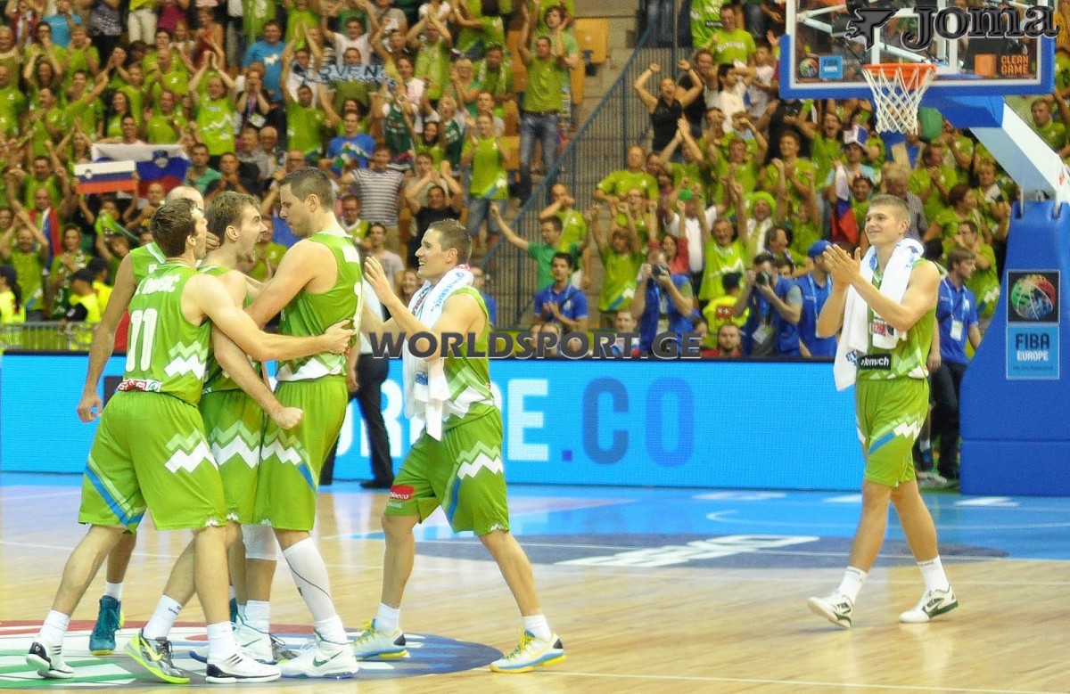 In the next offence Domen Lorbek scored the only 3 pointers from the Slovenians. After the turnover of Tsintsadze, Lorbek earned another 2 points. One minute and half were left before the final siren and the hosts advanced 67:61.