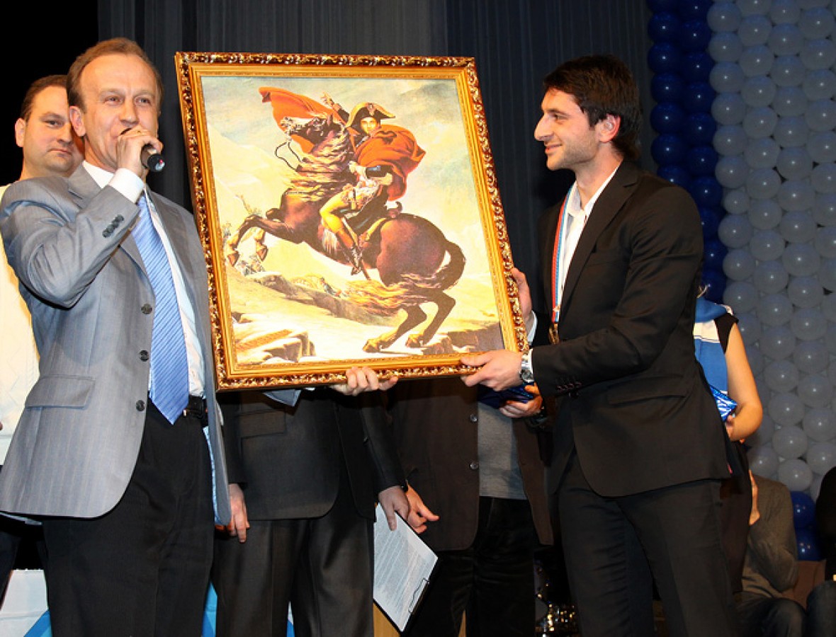 Georgian football player was given prize at the ceremony of the club. Director of "Volga" TV company gave him a picture of Napoleon with the face of Martsvaladze.