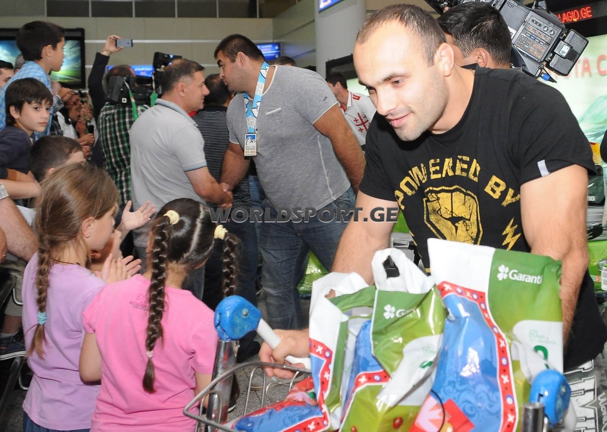 World champion Georgian judo team arrived in Georgia several hours ago. About 300 people arrived at the Tbilisi airport to meet the champion team. Managers of Ministry of Sport and National Olympic Committee, current and veteran judokas, relatives, friends and fans were among them.