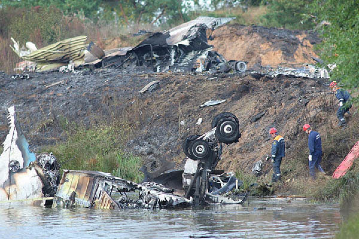 Yesterday, Russian disaster shocked the whole world. An airliner Yak-42 that crashed on the banks of the Volga River, killing 43 people including most of one of Russia's premier hockey teams. The reason of the disaster is still unknown, investigation is underway. Yak-42 crashed just after takeoff Wednesday from the Yaroslavl airport, 150 miles (240 kilometers) northeast of Moscow. The Interstate Aviation Committee says the recorders are believed to be in the tail section of the jet, which is partly submerged in the river.