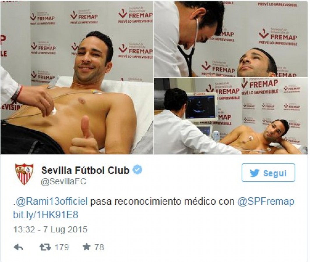 იტალიური "მილანის" აწ უკვე ყოფილი ფეხბურთელი ადილ რამი ოფიციალურად "სევილიას" ფეხბურთელია. აღნიშნული ინფორმაცია სევილიური გუნდის ვებგვერდმა ოფიციალურად დაადასტურა. 29 წლის მცველმა ესპანურ კლუბში სამედიცინო შემოწმება წარმატებით გაიარა და იგი "რამონ სანჩეს პისხუანიზე" 4 სეზონი ითამაშებს.
