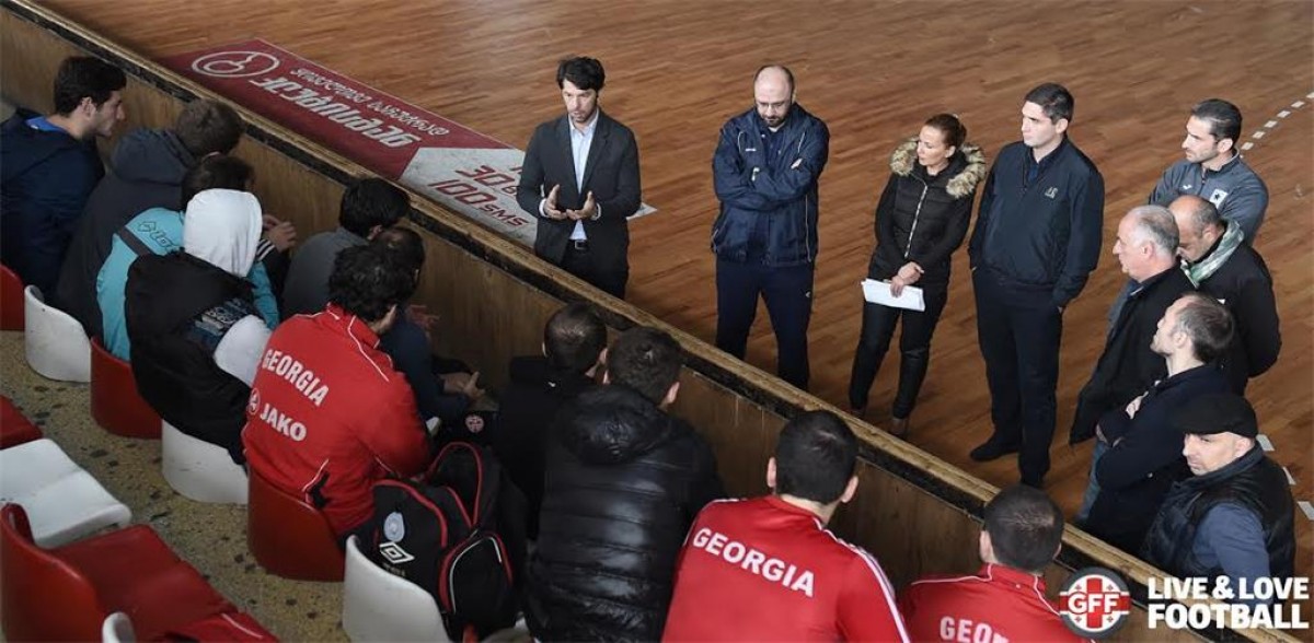 საქართველოს ფეხბურთის ფედერაციის პრეზიდენტი ლევან კობიაშვილი და გენერალური მდივანი დავით მუჯირი სპორტკომპლექს არენა 2-ში ფუტსალის ნაკრების წევრებს შეხვდნენ. საქართველოს ფუტსალის ეროვნული ნაკრები მსოფლიო ჩემპიონატის საკვალიფიკაციო ეტაპის მატჩებისთვის ემზადება.