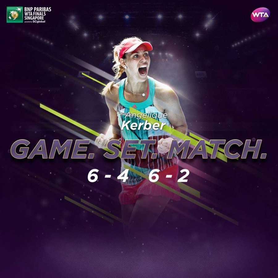 წლის შემაჯამებელ ტურნირზე მსოფლიოს ნომერ პირველმა ჩოგბურთელმა ანგელიკა კერბერმა რუმინელი სიმონა ჰალეპი იოლად 6:4, 6:2 დაამარცხა. შეხვედრა საათსა და 24 წუთს გაგრძელდა. კერბერი ძალიან აკურატულად თამაშობდა და მხოლოდ 16 უნებლიე შეცდომა ჰქონდა, ხოლო ჰალეპს 35. ანგელიკამ ხუთი ბრეიკ-პოინტიდან ოთხი შეასრულა, ხოლო სიმონამ ექვსი შესაძლებლობიდან მხოლოდ ერთი.