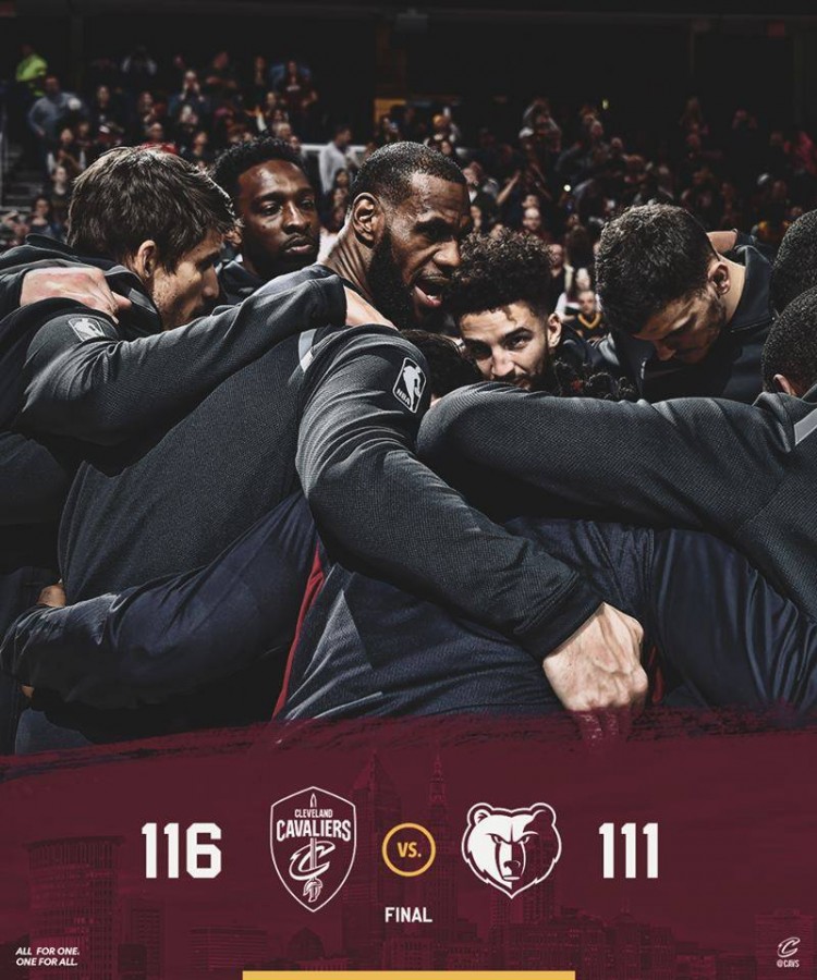 “კლივლენდმა” შინ “მემფისი” 116:111 დაამარცხა. მატჩში გადამწვეტი მეორე პერიოდი აღმოჩნდა, რომელიც “კავალიერსმა” 38:20 მოიგო. ლებრონ ჯეიმსმა ორმაგი დუბლი შეასრულა, 34 ქულა და 12 პასი. “მემფისში” კი ტაირიკ ევანსი 31 ქულით, 12 პასით და 7 მოხსნით გამოირჩა. “კავალიერსმა” ზედიზედ მე-11 შეხვედრა მოიგო ჯამში კი 16 მოგებით და 7 წაგებით აღმოსავლეთ კონფერენციაში მეორე ადგილს იკავებს.