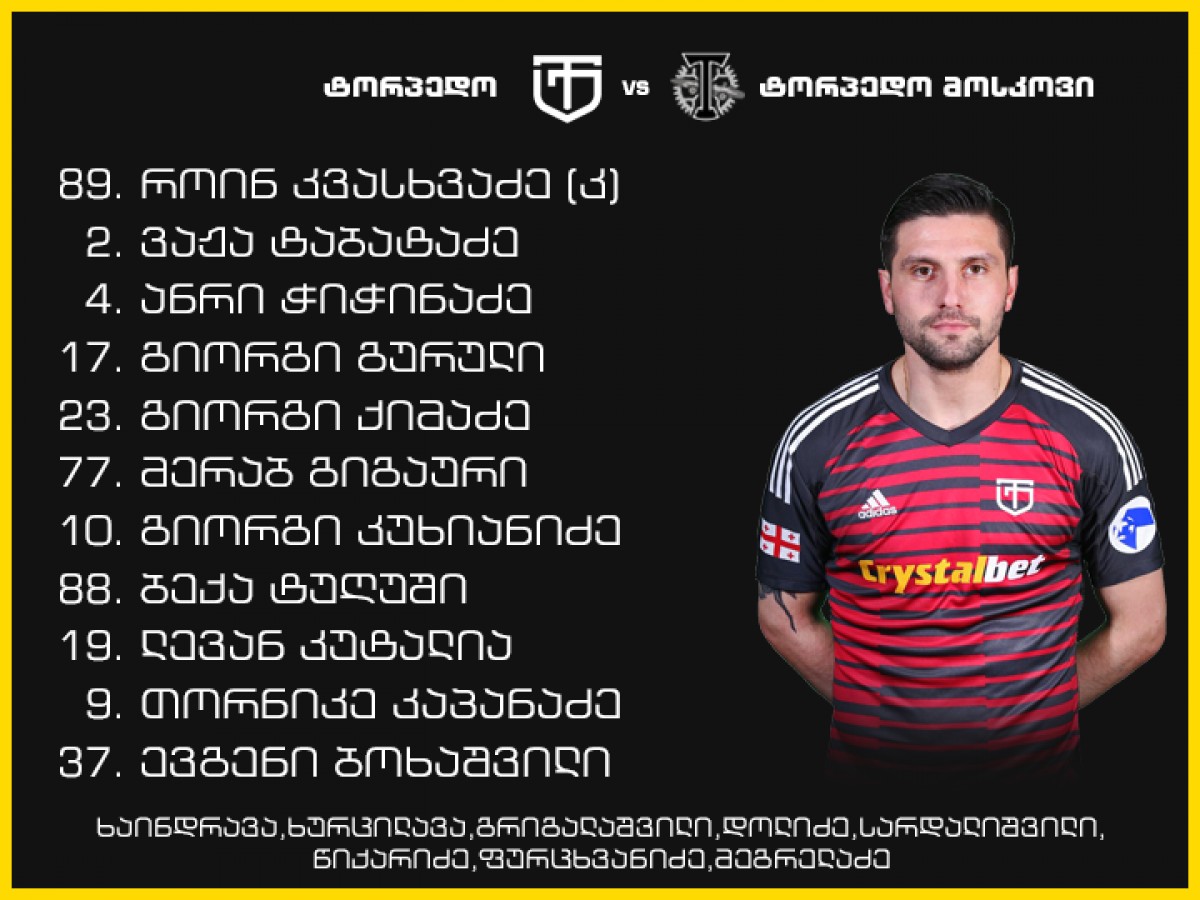 თურქეთში შეკრებაზე მყოფი ქუთაისის "ტორპედო" მორიგ ამხანაგურ მატჩს მართავს. საქართველოს ჩემპიონის მეტოქე რუსეთის მეორე დივიზიონში მოასპარეზე მოსკოვის "ტორპედოა". შეხვედრის პირდაპირ რეპორტაჟს შესაძლებელია თვალი ადევნოთ ქართული კლუბის youtube-არხზე:
