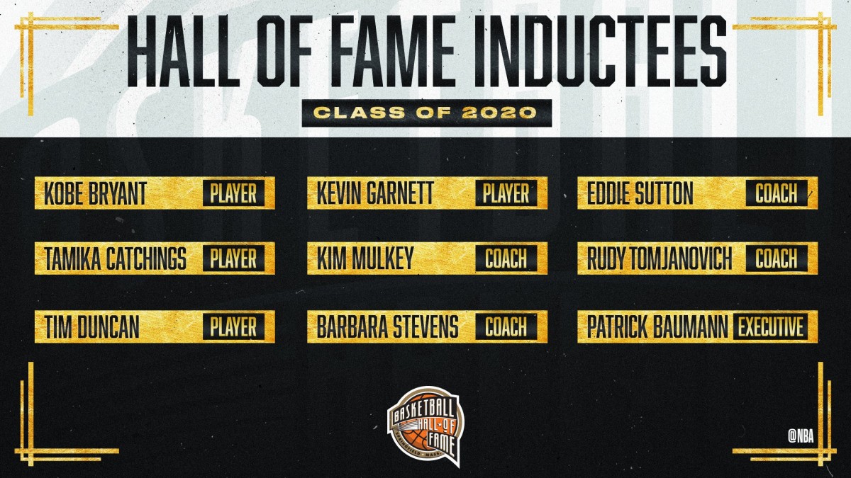 ბრაიანტის გარდა, დიდების დარბაზში კიდევ რვა ადამიანი შეიყვანეს, მათ შორის ტიმ დანკანი და კევინ გარნეტი. ხსენებულმა სამივე ლეგენდამ ერთად NBA-ს 11 ჩემპიონის და 4 MVP-ის ტიტული მოიგეს.
