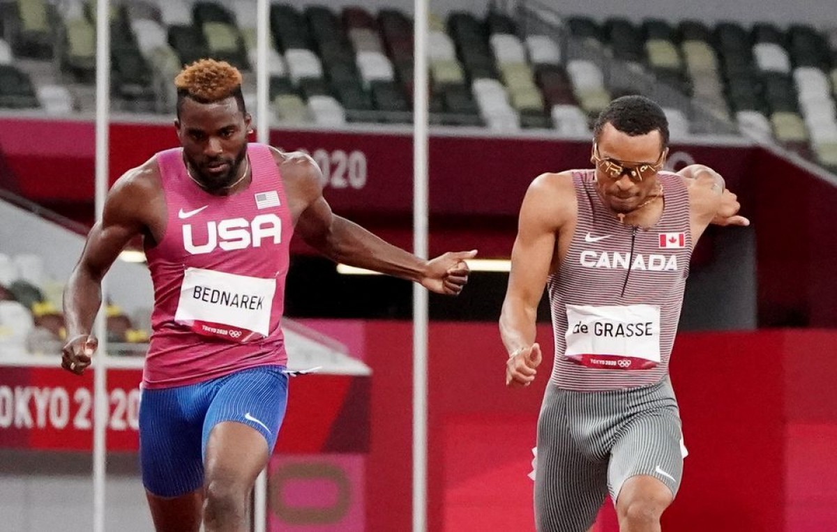 დე გრასემ სამი ამერიკელი ჩამოიტოვა - კენ ბედნარეკი, ლაილსი და 17 წლის ამომავალი ვარსკვლავი ერიონ ნაითონი. სხვათა შორის, ამერიკელი სპრინტერები ამ დისტანციაზე ოქროს მოპოვებას 2004 წლის შემდეგ ვერ ახერხებენ.