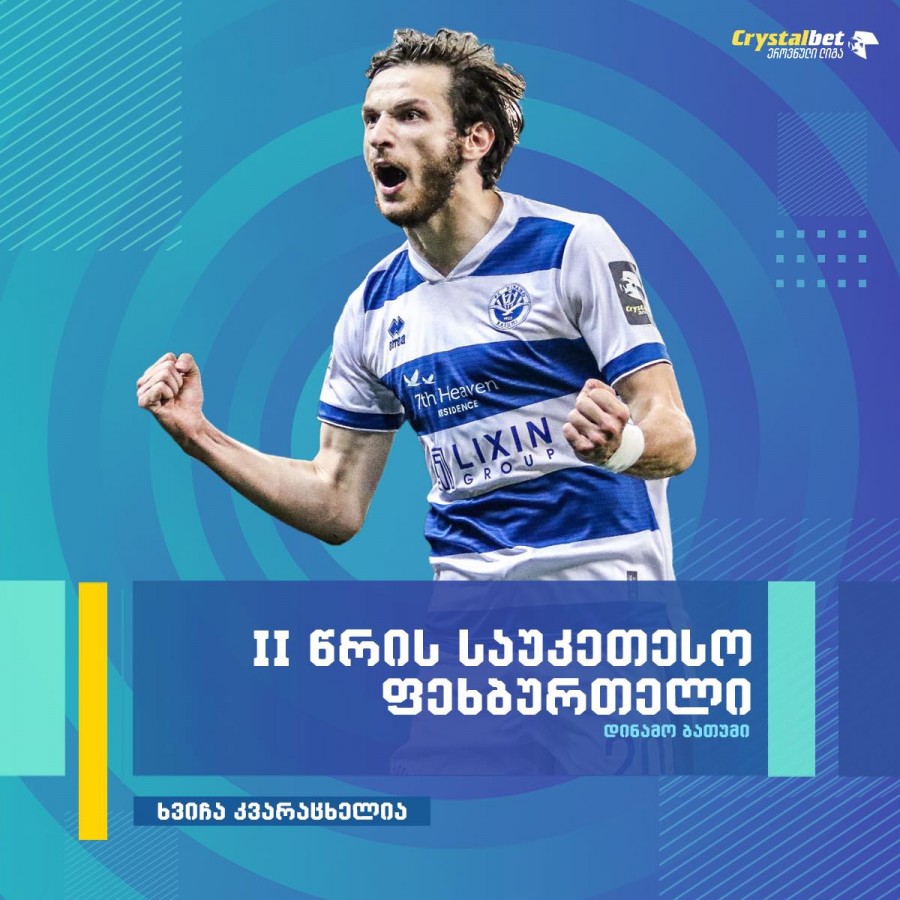 საქართველოს ეროვნული ლიგის მეორე წრის საუკეთესო ფეხბურთელად ხვიჩა კვარაცხელია დასახელდა. „დინამო ბათუმის“ აწ უკვე ყოფილმა შემტევმა მეორე წრის შვიდ მატჩში თავი 5 გოლით გამოიჩინა.