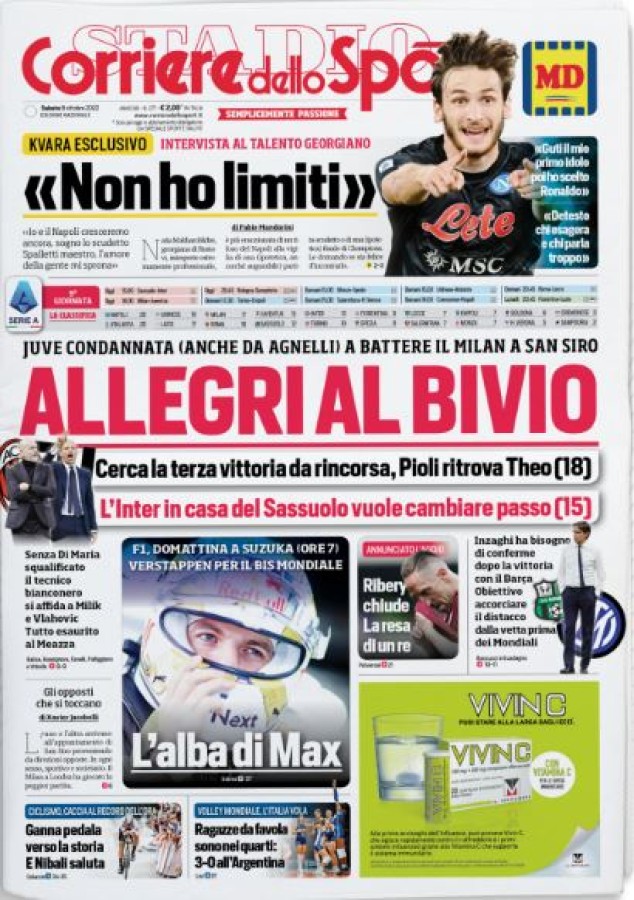 საქართველოს ნაკრებისა და „ნაპოლის“ ფეხბურთელმა ხვიჩა კვარაცხელიამ Corriere Dello Sport-ის ვრცელი ინტერვიუ მისცა, რომელშიც მან „ნაპოლიზე“, საკუთარ თავსა და მიზნებზე ისაუბრა. როგორც მან აღნიშნა, როგორც სკუდეტოს, ისე ჩემპიონთა ლიგის მოგება უნდა და საკუთარ თავს საზღვრებს არ უწესებს.