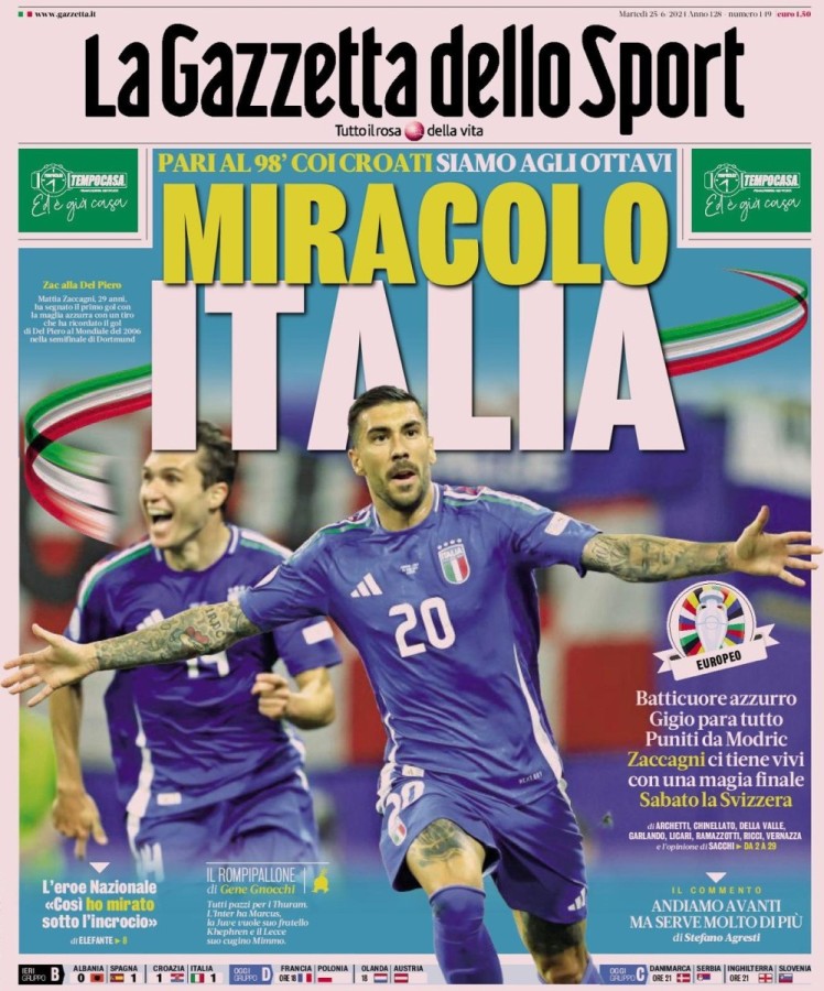 მატია ძაკანის ეს 90+8 წუთზე გოლი (პირველი მის სანაკრებო კარიერაში) არის ყველაზე გვიანი, რაც იტალიას მსოფლიო და ევროპის ჩემპიონატებზე ძირითად დროში გაუტანია.