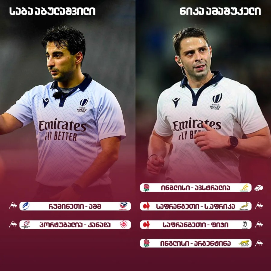 სუპერ თასის შემდეგ ტესტ-მატჩებში გადაინაცვლებს საბა აბულაშვილი და 15 ნოემბერს რუმინეთისა და აშშ-ს მატჩში, ხოლო 22 ნოემბერს პორტუგალია კანადას შეხვედრაში მოედნის მსაჯის პირველი ასისტენტი იქნება.