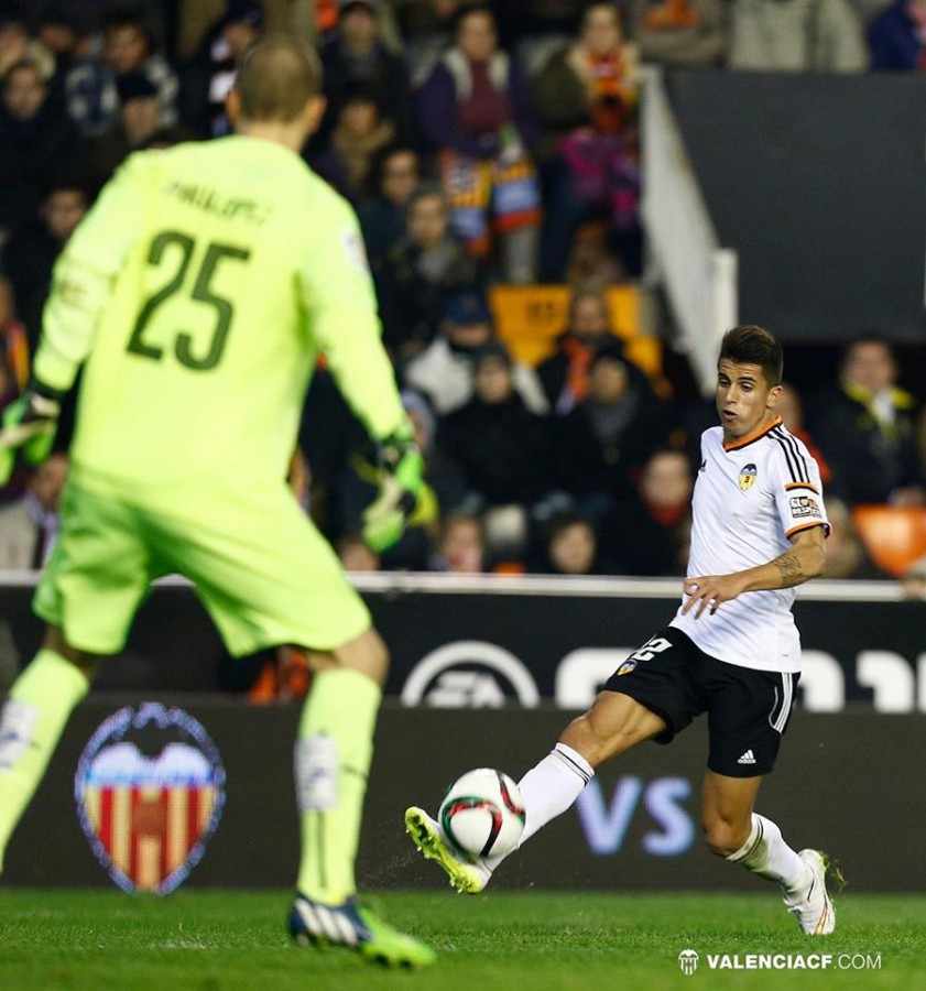 “ვალენსიამ” შინ “ესპანიოლი” მიიღო და გაჭირვებით დაამარცხა. ნუნუ ესპირიტო სანტომ გადახალისებული შემადგენლობა გაიყვანა მინდორზე, რის გამოც “მესტალიაზე” შეკრებილ პუბლიკას გვარიანად მოუწია ნერვიულობა. “ლოს ჩემ” პირველი ნახევარი ხოსე ლუის გაიას შესანიშნავი გოლით მოიგო. მე-60 წუთზე კრისტიან სტუანიმ გაათანაბრა ანგარიში, ხოლო 86-ე წუთზე ალვარო ნეგრედომ ზუსტად შეასრულა პენალტი და თავის გუნდს მოაგებინა – 2:1.