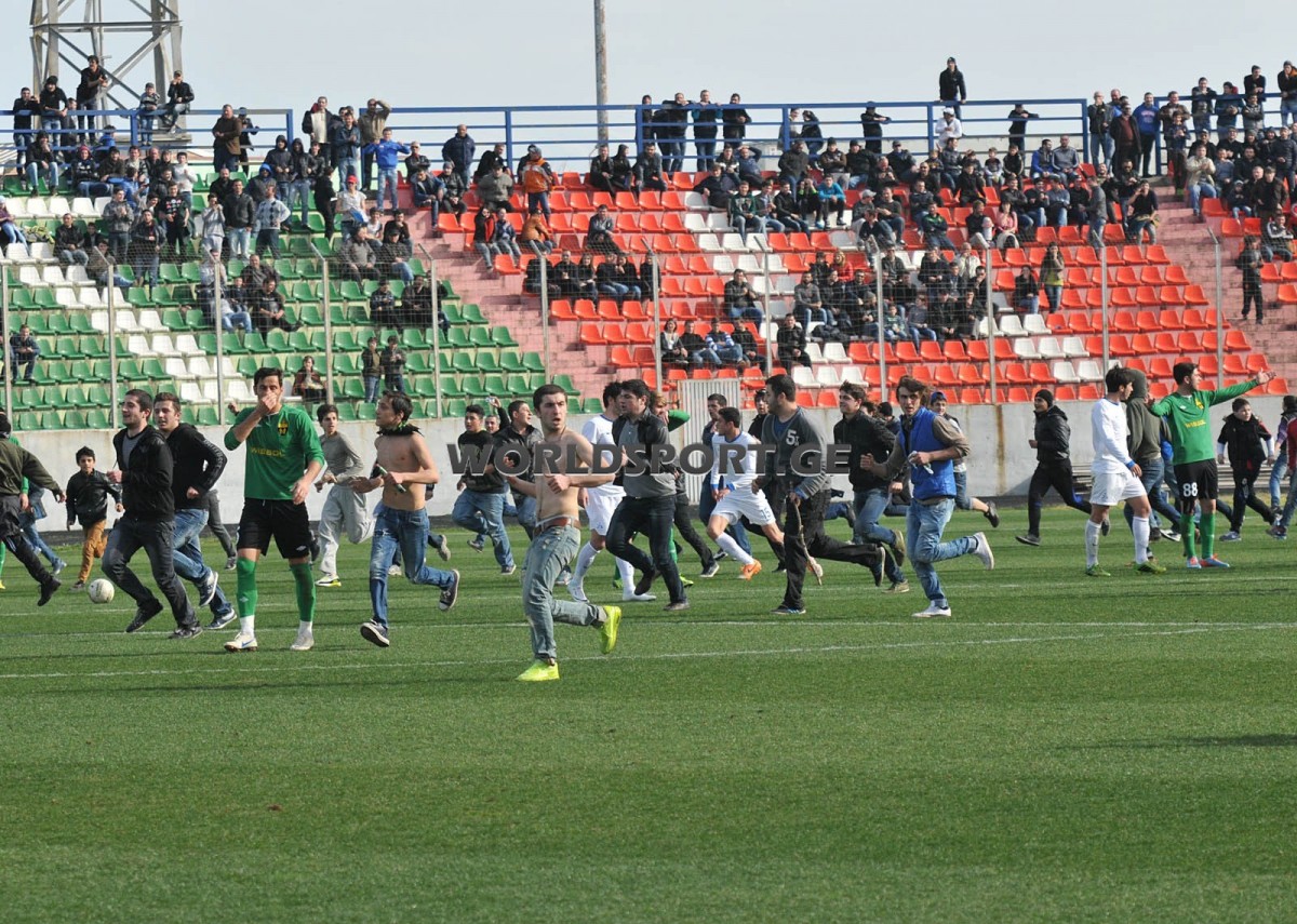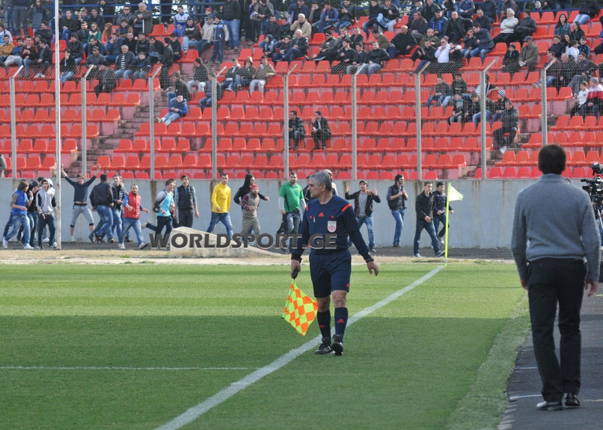 შეხვედრის 58-ე წუთი მიმდინარეობდა როდესაც ქუთაისის “ცენტრალურზე” შესასვლელი კარი გაიღო და “ტორპედოს” გულშემატკივრების დიდი ნაწილი მოედნისაკენ დაიძრა. სამწუხაროდ, ისე მოხდა რომ უსაფრთხოების სამსახურმა და პოლიციამ ვერ მოახერხა იმ სირცხვილის აცილება, რაც სტადიონზე მოხდა. ამ ფაქტს მოედანზე თამაშის შეჩერება მოჰყვა, ქომაგები კი წინ მიიწევდნენ გინებით მოწინააღმდეგე მხარისაკენ, სადაც ტრიბუნებზე “დინამოს” ფანები იმყოფებოდნენ. ერთი მომენტი, სტადიონზე შემოჭრილები თითქოს უკან გაბრუნდნენ, მაგრამ კარებიდან ქომაგთა ახალი ტალღა გამოჩნდა და სათამაშო მოედანი ისევ გულშემატკივრებით გაივსო. მათი დიდი ნაწილი ისევ იმ ტრიბუნასთან მივიდნენ. ქუთაისელთა გინებას, თბილისელმა ფანებმა პლასტმასის სკამებით უპასუხეს. სიტუაცია ერთი შეხედვით უმართავი ჩანდა. დაფიქსირდა რამდენიმე შემთხვევა, როდესაც ზოგიერთმა ფანმა თბილისელ ფეხბურთელებზე საცემრად გაიწია. დაზიანებები მიიღეს დაცვის თანამშრომლებმაც. ამასობაში წესრიგის დამცველებს დამატებითი ძალებიც დაემატნენ და სიტუაციაც მეტ-ნაკლებად კონტროლს დაექვემდებარა. წესრიგის დამცველებმა ასევე სწრაფად გაიყვანეს “დინამოს” ქომაგები გარეთ და ცხელ სიტუაციას გაარიდეს. ნელ-ნელა სათამაშო მოედანიც გაიწმინდა, თუმცა როგორც გაირკვა, გარეთ გასულმა ფანებმა რამდენიმე მანქანა, მათ შორის ერთი საზოგადოებრივი მაუწყებელის მანქანაც დააზიანეს.