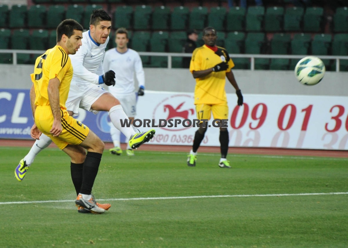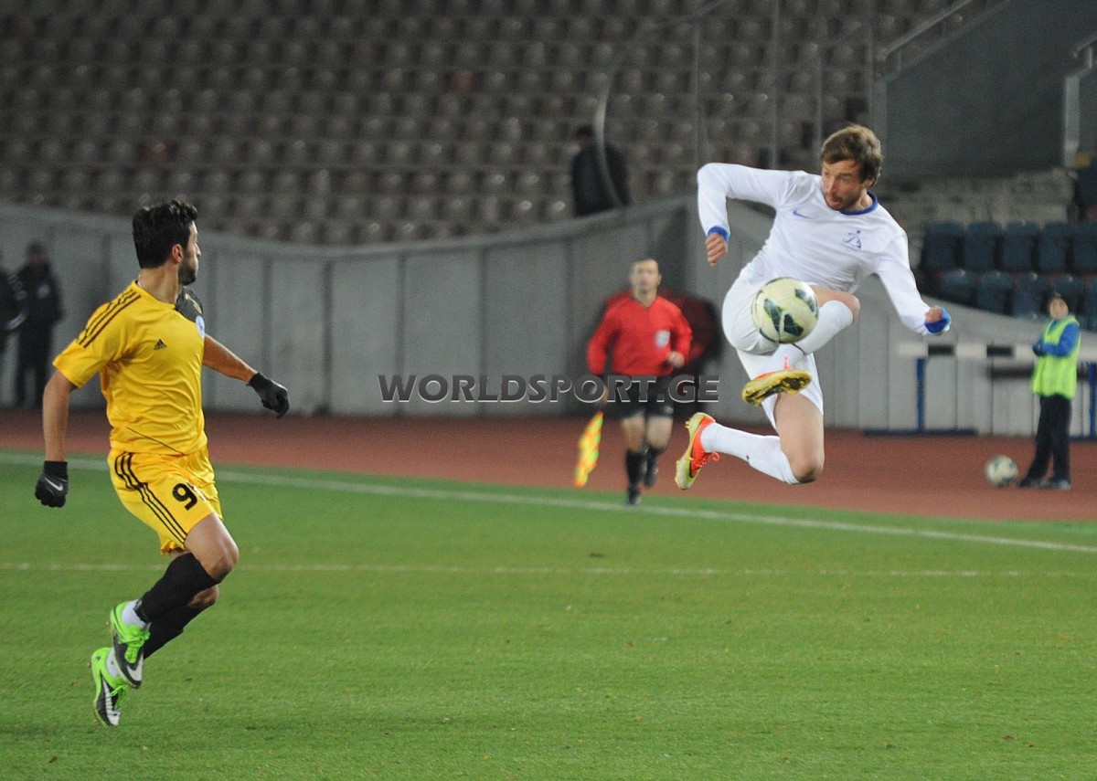 ანგარიში 30-ე წუთზე გაიხსნა. მარჯვენა ფლანგიდან ალექსანდრე კოშკაძემ კუთხური მოაწოდა და ვილი ისიანმა ბურთს მიმართულება ოდნავ შეუცვალა – 0:1. შესვენებამდე მეტი საინტერესო არაფერი მომხდარა.
