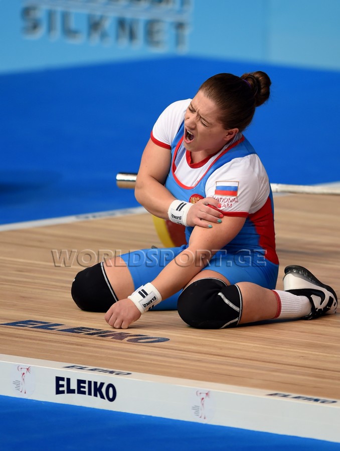 В первом движении она в первом же подходе подняла штангу весом 70 кг, а для того, чтобы поднять 74 кг, ей понадобились уже две попытки.