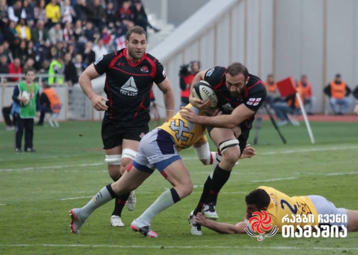 Матч в Тбилиси на «Динамо арене» проходила с полним преимуществом «Борджгалоснеби». Грузины открыли счёт на третье минуте попыткой Антона Феикришвили. В первом тайме грузинская команда занесла три попытки (два раза Феикришвили, один раз Сандро Тодуа), Мераб Квирикашвили осуществил две реализации, а румыны только за счёт штрафных сокращали счёт. Тайм выиграли хозяева со счётом 19:9.