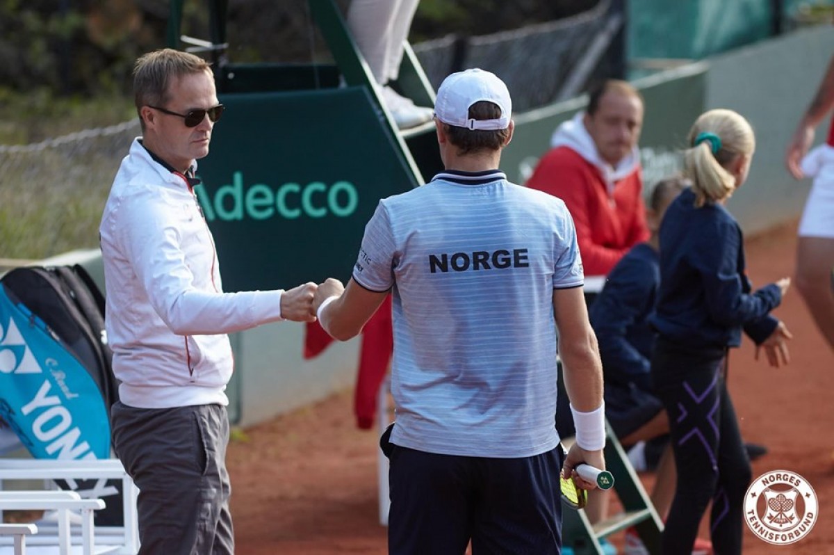 В первой всрече Александр Метревели победил Виктора Дурасовича, со счетом 7:5, 6:4. После, норвежский лидер Каспер Руд обыграл Георгия Цивадзе 6:1, 6:0. В парном разряде дуэт Руди-Дурасович победили Метревели-Бакши, со счетом 6:4, 6:3, скандинавы вышли вперёд (2:1). В решающем матче Каспер Руд обыграл Метревели 6:3, 6:2 и завершил серию, в пользу своей команды 3:1.